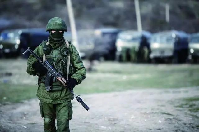 2014 年 2 月 24 日,俄军空降克里米亚半岛,上级命令他们摘掉所有的国家和军队徽标,以保持低调、防止恐慌。这些没有任何国际标识的武装人员,因为其身穿绿色战斗服,被戏称为"小绿人"。