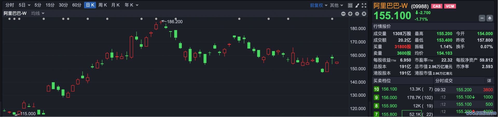 今日早间,阿里巴巴股价低开超2%,随后跌幅有所收窄。今年以来,阿里巴巴股价累计涨幅超92%。总市值近3万亿港元。