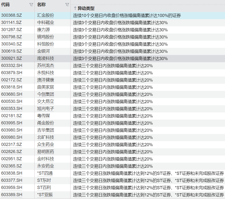 连续异动个股一览连续异动个股一览