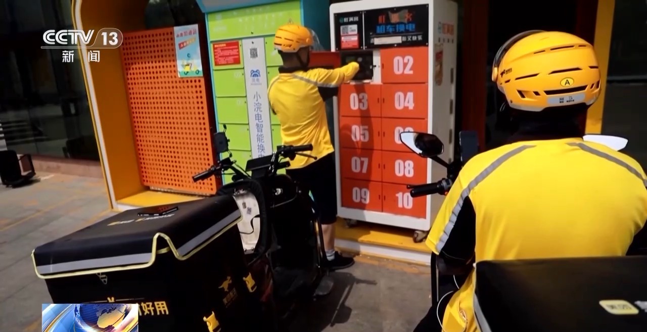 外卖员 崔凤洋:给我们提供了很方便的换电站金牛王,我们如果高峰期没有电了,可以来这里换电,如果中午非常热,感到身体有点难受可以到这来,也提供解暑药品。