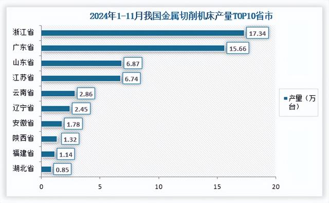 从各地区销量来看亿润配资,在2024年1-11月我国金属切削机床产量前三的省市分别为浙江省、广东省、山东省;产量分别为17.34万台、15.66万台、6.87万台;占比分别为28.3%、25.6%、11.2%。其中浙江省、广东省产量均超过15万台。